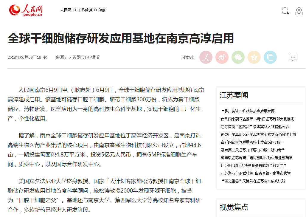 孩子脫落的乳牙或?qū)⒊蔀椤熬让馈保〗?,在江蘇南京,長三角地區(qū)最大的儲存研發(fā)應(yīng)用基地啟用,可儲存口腔干細(xì)胞、臍帶干細(xì)胞三…