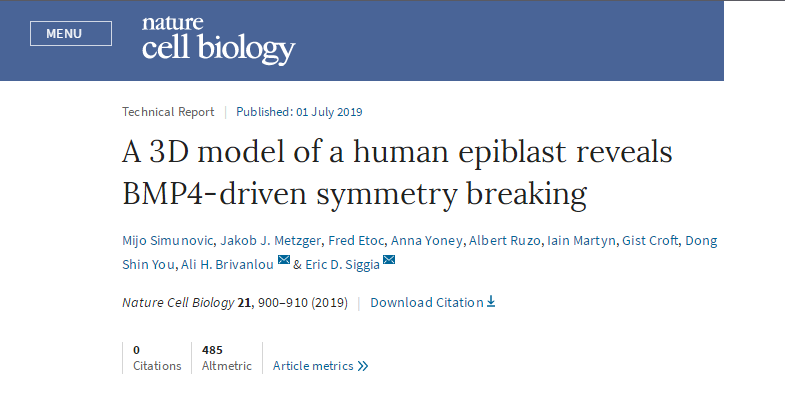 Nature Cell Biol:利用人胚胎干細胞構建出的胚狀體揭示BMP…